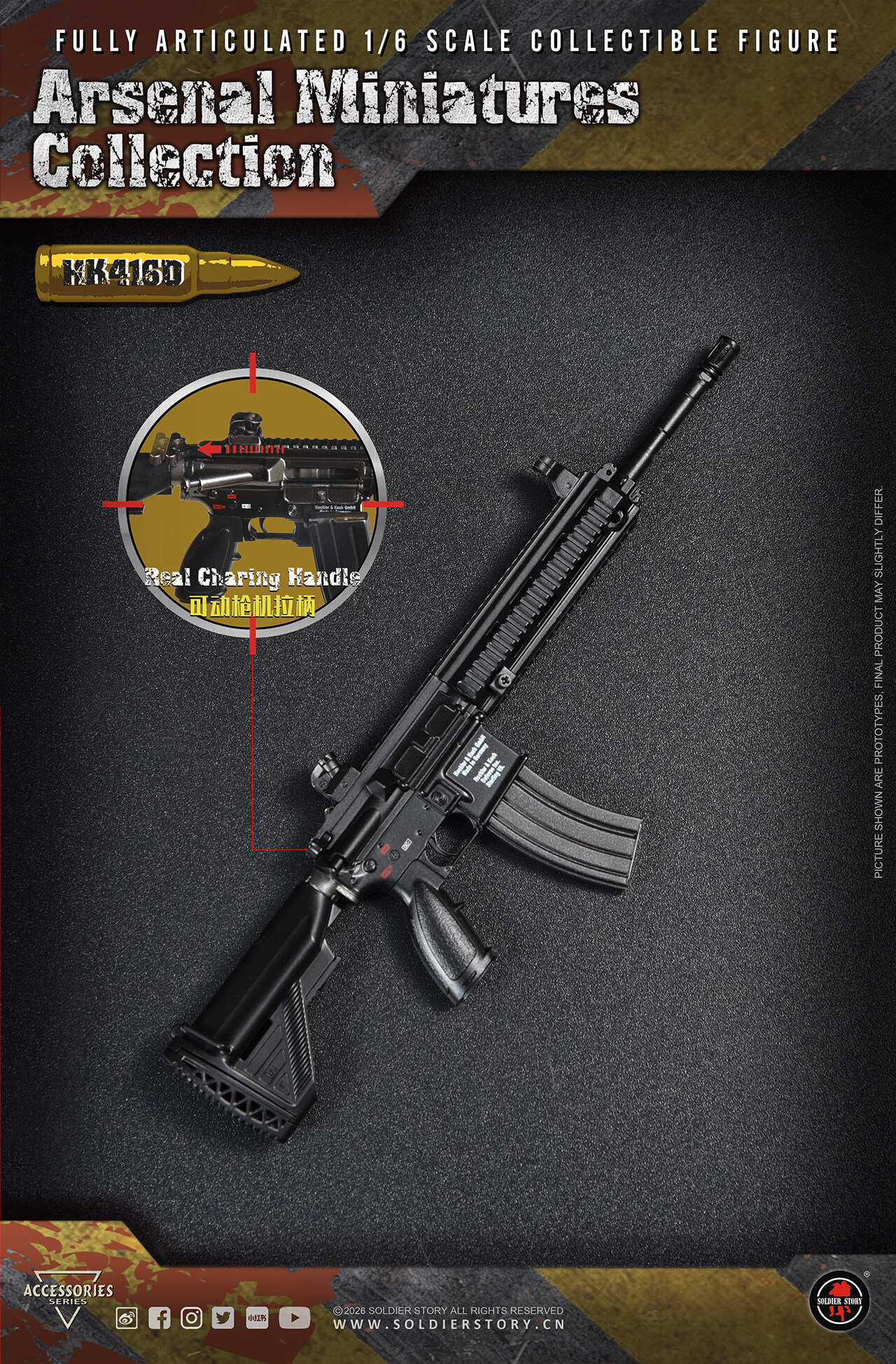 CNY 88.00为配合1/6标准版&豪华版机器狗:Soldier Story 推出三款 1/6 单兵武器收藏系列,每款武器皆采用极致的仿真结构设计,完美还原真枪细节。 1) #SSA011 QBZ-95-1 (中国95-1式自动步枪) 2) #SSA010 HK416D(世界特种部队突击步枪) 3) #SSA009 MK16 SCAR(比利时FN SCAR突击步枪) -
